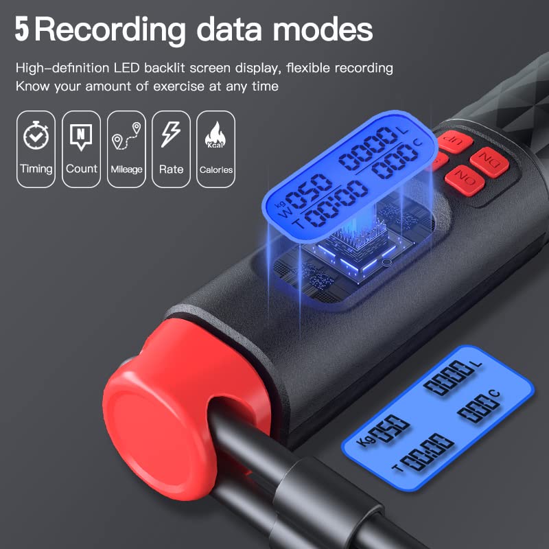 The Cordless Digital Jump Rope features a built-in LED display that tracks your workout progress. It shows the number of jumps and calculates calorie consumption based on your weight, helping you monitor your fitness results and set achievable exercise goals for better performance.