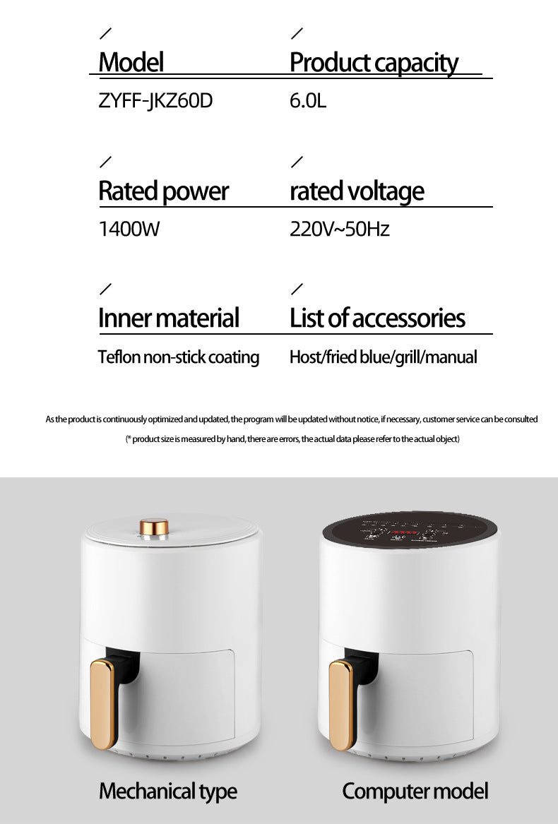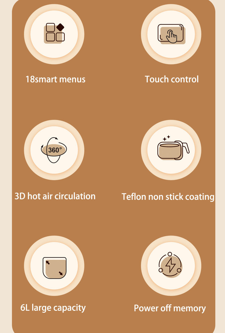 Cook mouthwatering meals for the whole family with the Digital Large Capacity Air Fryer. With its spacious 6L capacity, you can easily prepare generous portions of your favorite dishes, from crispy fries to succulent chicken wings, without worrying about space constraints. Whether you're cooking for one or hosting a family gathering, this air fryer ensures you can create satisfying meals in no time.
