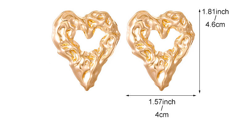 These Heart Statement Earrings showcase a bold and striking heart-shaped silhouette that exudes elegance and charm. The heart design makes a powerful fashion statement, symbolizing love and affection, perfect for any occasion where you want to add a touch of romance and sophistication to your look.