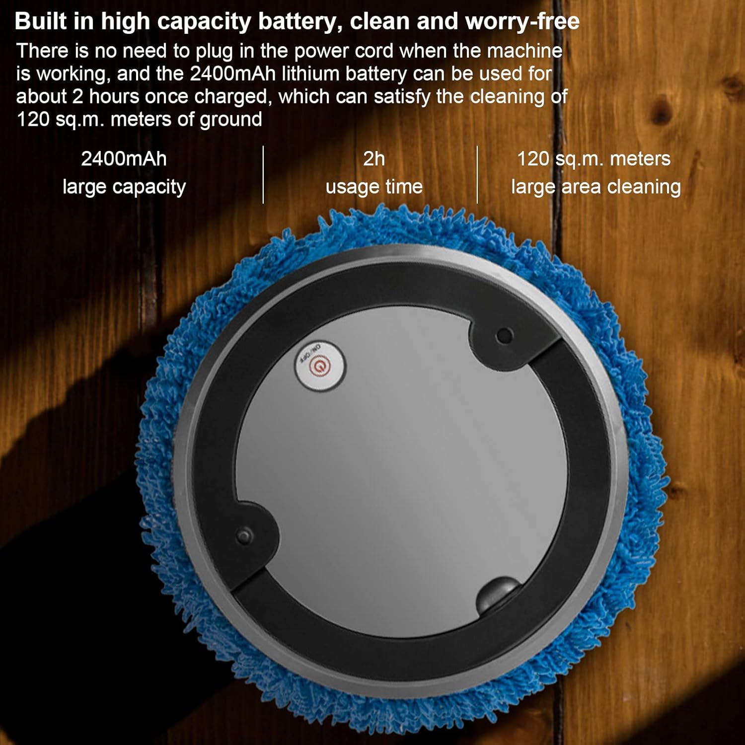 The Intelligent Sweeping Robot Mop is equipped with a large 2400mAh battery, offering up to 2 hours of continuous use on a single charge. This ample battery capacity allows the robot to cover up to 120 square meters, making it ideal for cleaning larger spaces without interruption. With its long-lasting power, you can rely on the robot to get the job done efficiently, saving you time and effort.