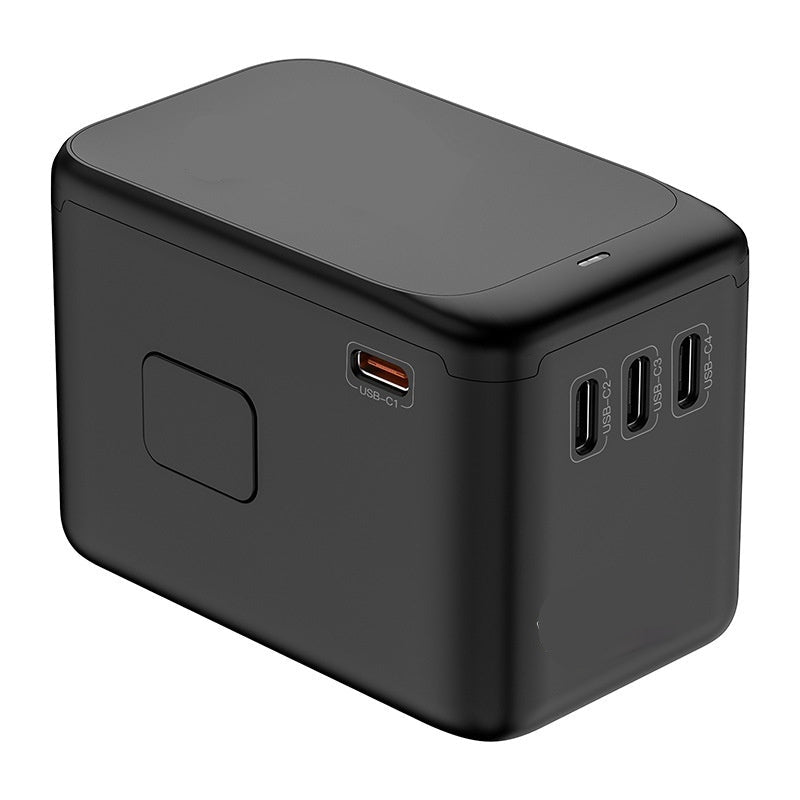 Equipped with 4 USB-C ports (100W Max) and 1 USB-A port, the Universal Travel Adapter allows you to charge up to five devices simultaneously. The USB-C ports support PD3.0 & QC3.0 fast charging, ensuring that your devices charge at the fastest possible speed. For instance, it can charge your iPhone 14 Pro up to 88% in just 30 minutes, making it perfect for quick power-ups on the go. Whether you're charging smartphones, tablets, or other USB-powered devices, this adapter offers efficiency and speed.