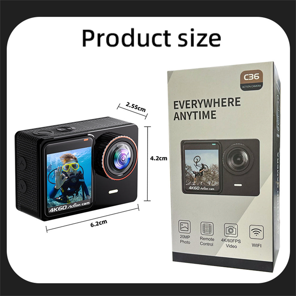 The Waterproof HD Action Camera features a Sony IMX368 sensor with a 170° super wide-angle lens, providing stunning clarity and expansive views for all your action-packed moments. Whether you're capturing fast-moving sports, scenic landscapes, or underwater adventures, this camera ensures every detail is vividly captured in high definition. With video resolutions of up to 4K at 60fps and various modes like 1080P 60fps and 2.7K, you can choose the best settings for your needs.