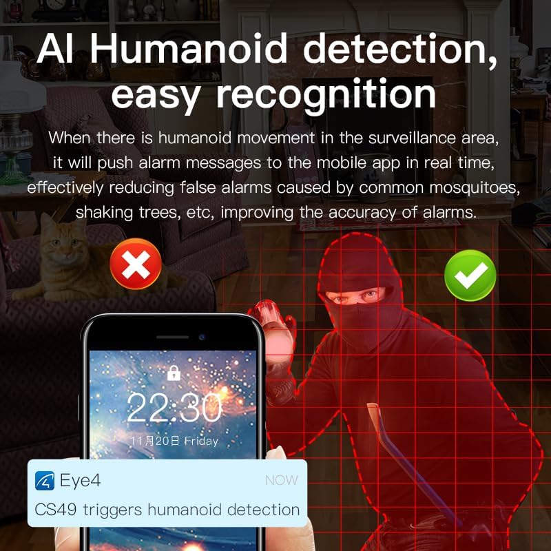 This surveillance camera is equipped with precise motion detection technology, capable of identifying movement and sending instant alerts when necessary. You can adjust the sensitivity levels (low, medium, high) to suit your environment and reduce false alarms. This feature helps ensure that you're notified only when important events occur, enhancing security and peace of mind.